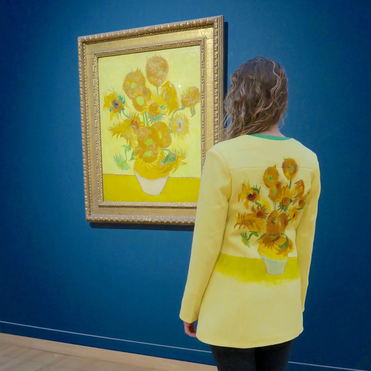 Ariel Adkins’s mission is to be a living work of art each day. Creator of Artfully Awear, a movement dovetailing art and clothing, Ariel produces garments inspired by artwork from all different genres, mediums, and eras, all over the world. Believing that the best way to appreciate art is to do it yourself, Ariel has created over sixty one-of-a-kind pieces of clothing that recreate artwork in a wearable form. Encouraging others to harness their inspiration, she offers a peek into the process behind her work on her Instagram account, @artfullyawear, and she teaches workshops and lectures on “How to Dress Like a Work of Art” and “Create Your Own Masterpiece.” Artfully Awear has inspired others – from children as young as two years old to grandparents – to engage with art in a more active way, making their own wearable art. Claiming Oscar Wilde’s quote as her mantra – “One should either be a work of Art, or wear a work of Art” – Ariel uses Artfully Awear to express her artistic obsession from head to shoes.