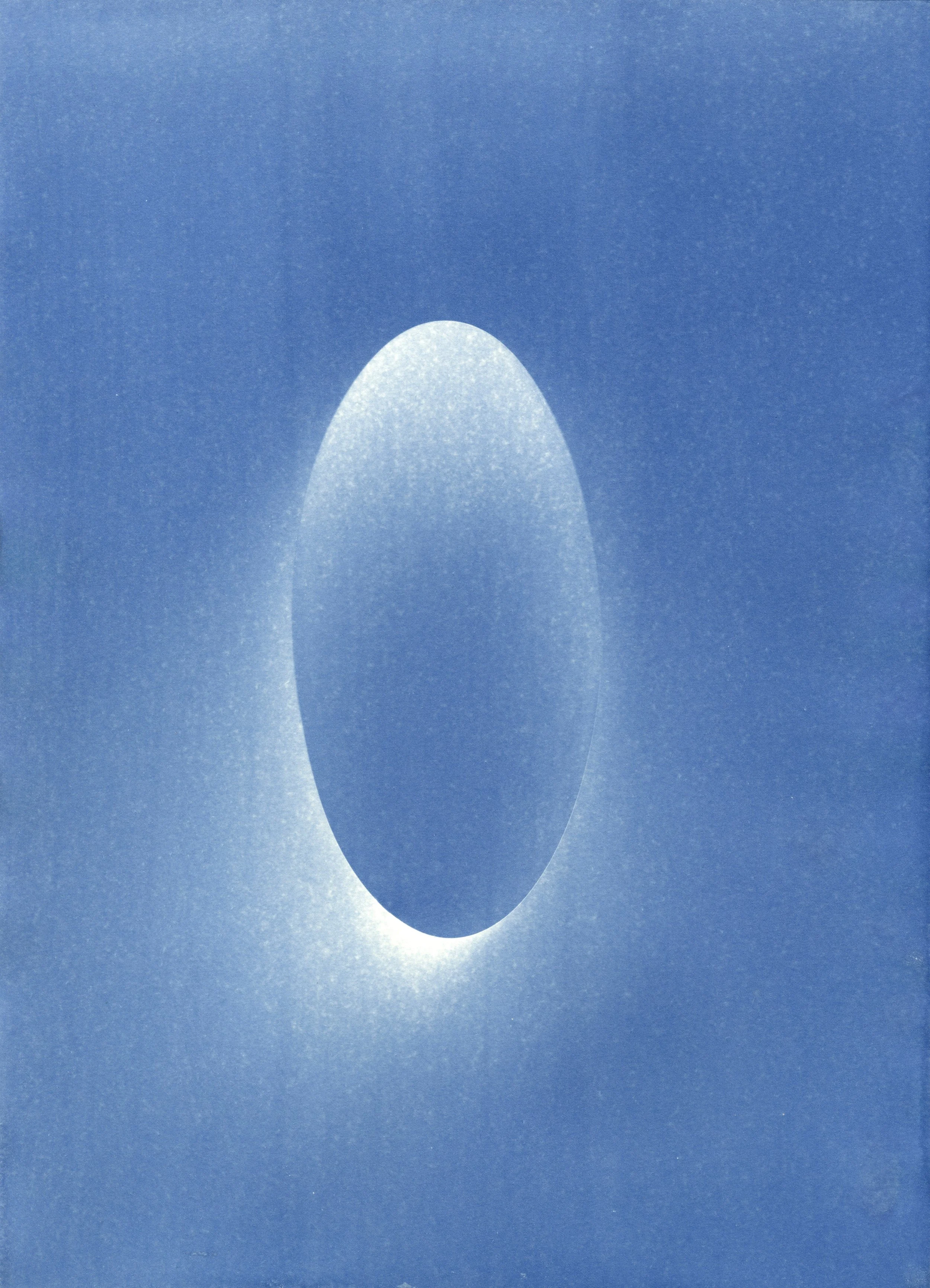 Ella Barnes is a multimedia artist and educator working at the intersection of photography, sculpture, and collage through the cyanotype process. Using light-sensitive chemistry, she creates images without a camera, shaping light through shadow with sculpted materials and assembled objects. The resulting work explores a sky-like dimension, transmitting emotional content through luminous form and pattern. Her work has been exhibited both nationally and internationally.