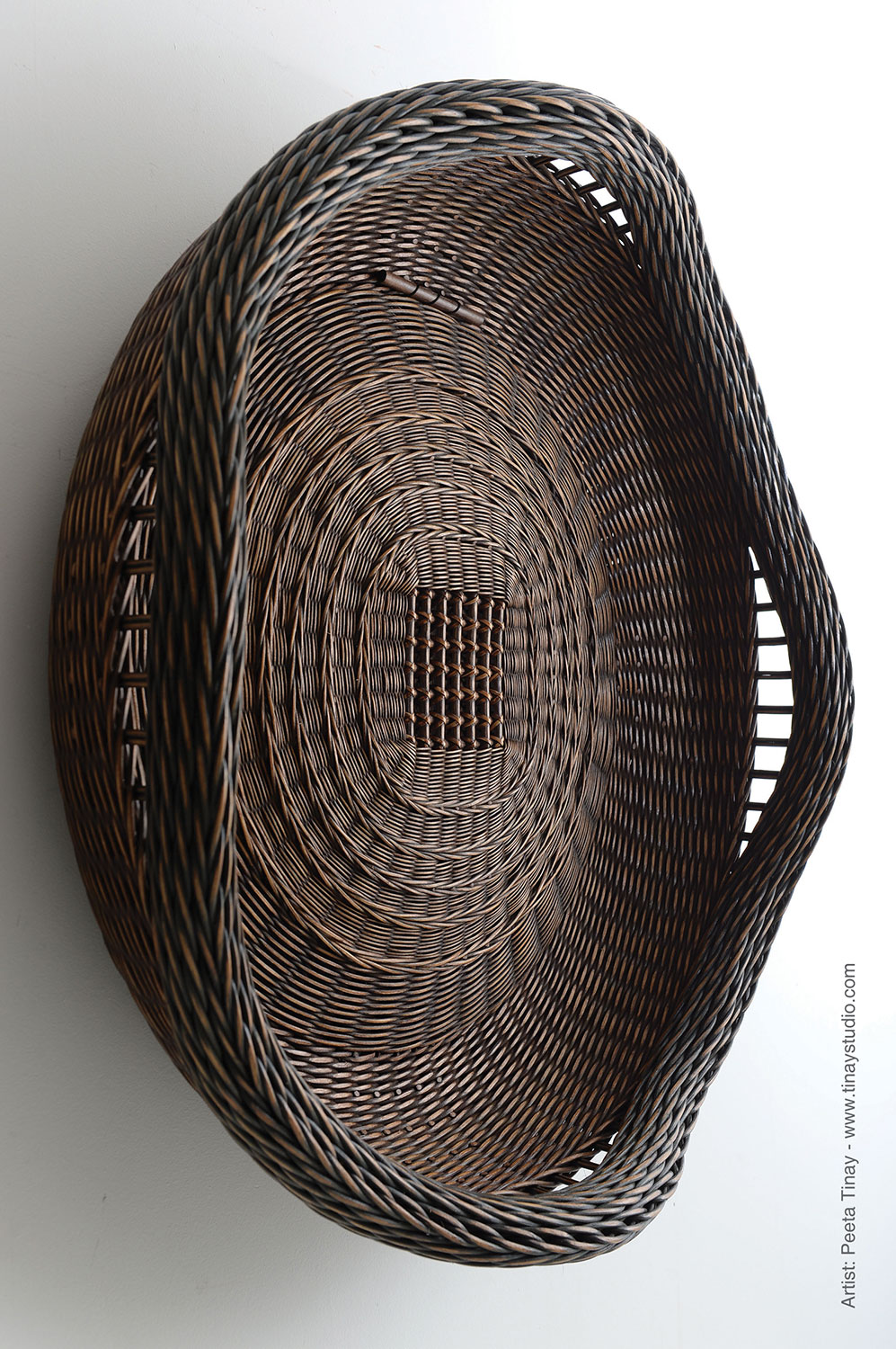 “My love of weaving grew from my wicker furniture restoration background which began in 1990 to 2000 in Berkeley California. Instantaneously my passion for craft and design was ignited! The restoration of antique and contemporary wicker furniture ran the gamut from simple cane wrap replacements on the legs of chairs to full reweaves of chairs, tables, and planters etc. The blending of old to new finishes also became an important part of the restoration work. It was during the early 1990’s that I began teaching basketry as well.”